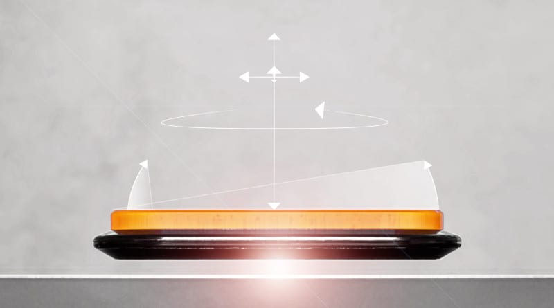 ACOPOS 6D is based on the principle of magnetic levitation: Shuttles with integrated permanent magnets float over the surface of electromagnetic motor segments. The modular motor segments are 240 x 240 millimeters in size and can be arranged freely in any shape. A variety of shuttle sizes carry payloads of 0.6 to 14 kilograms and reach speeds of up to 2 meters per second. They can move freely in two-dimensional space, rotate and tilt along three axes and offer precise control over the height of levitation. All together, that gives them six degrees of motion control freedom.