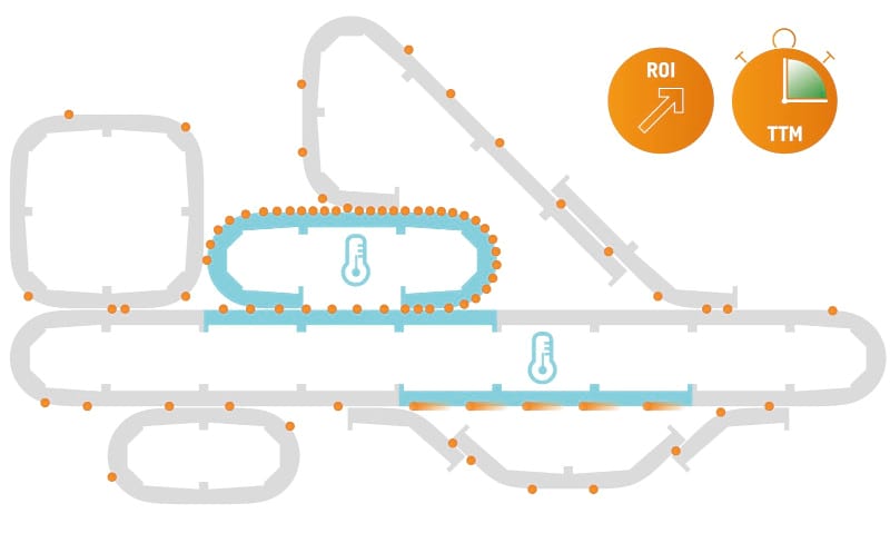 The mapp Trak system software calculates exactly where the track system has the highest power requirements. From this information, it is able to determine how much heat will be generated in each track segment.