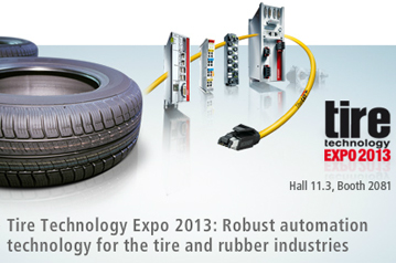 Beckhoff will exhibit its entire range of products with automation solutions for the tire manufacturing process at booth 2081 in hall 11.3 at Tire Technology Expo from 5 to 7 February 2013.