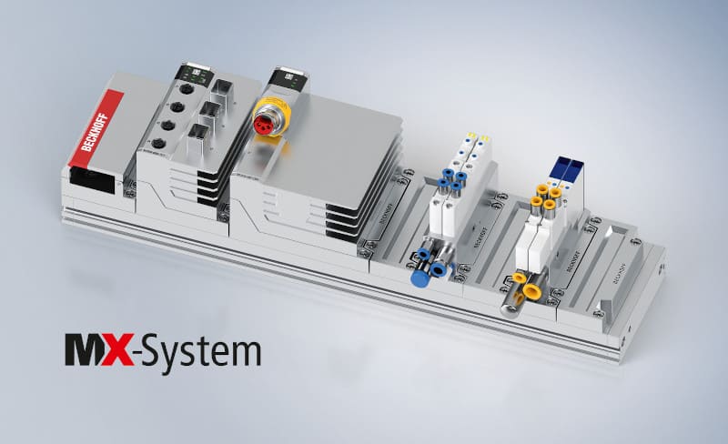 In November 2021, Beckhoff presented the MX-System: a completely new, holistic concept which aims to eliminated control cabinets. The basic concept aims to replace control cabinet wiring with a baseplate that allows a wide range of electronic modules to be automatically interconnected via standardized interfaces. All classic control cabinet functions are covered and pneumatic valves from Festo and SMC can now also be integrated directly with the help of two new modules.