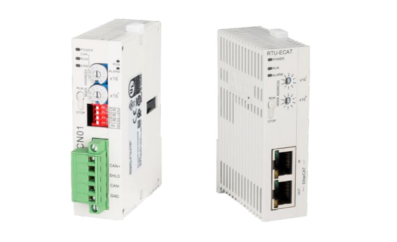 The RTU-ECAT supports Distributed Clock SYNC and SyncManagers SYNC and its max. baud rate is 100 Mbps. As for the RTU-CN01, it supports CANopen protocol DS301 V4.02 and CANopen NMT.