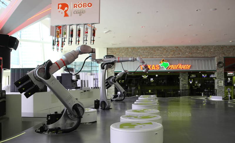 They prepare coffee, snacks and cold drinks before the eyes of customers: the robot café has been open in Dubai since mid-June by Hussain Lootah Group (HLG). Here, three KR 16 robots, now part of the KR CYBERTECH series, prepare the order made by the customers through a smart screen and place them on DGWorld’s WaitressBOT to deliver the order to the table. Silently, with enormous service speed and under the highest standards of hygiene. A future-proof concept, especially in times of Corona and social distancing. The digital hospitality attracts numerous guests every day.