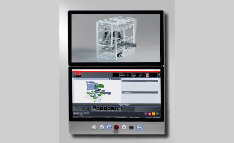 Innovation for your Application” – Eckelmann FCS presents a powerful industrial panel PC performing in resource-demanding situations with its two 21.5” TFT full HD displays with LED backlight and capacitive multitouch. The innovative E°DualPanel allows machine manufacturers and plant operators an easy implementation of extensive, complex and information-rich visualization tasks. Extended display space allows e.g. the integration of HMI-displayed order management masks, machine vision solutions for monitoring processes, automatic workpiece changing systems or a digital twin application.