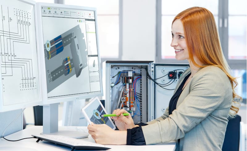 The engineering software increases the efficiency of the workflows. Bidirectional interfaces to CAE programs and direct connection to Phoenix Contact applications, configurators, and the online shop streamline and speed up time-consuming planning tasks.
