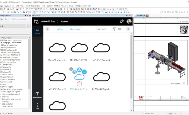 nnovative cloud services and the systems of the EPLAN Platform are now become increasingly integrated. As a first step, the new software solution EPLAN eManage Free was launched in mid-March. This free, cloud-based software enables the easy uploading of projects from the EPLAN Platform and web browsers into the secure ePulse cloud environment. A fee-based version of the software will be released in August that will offer expanded functionality.