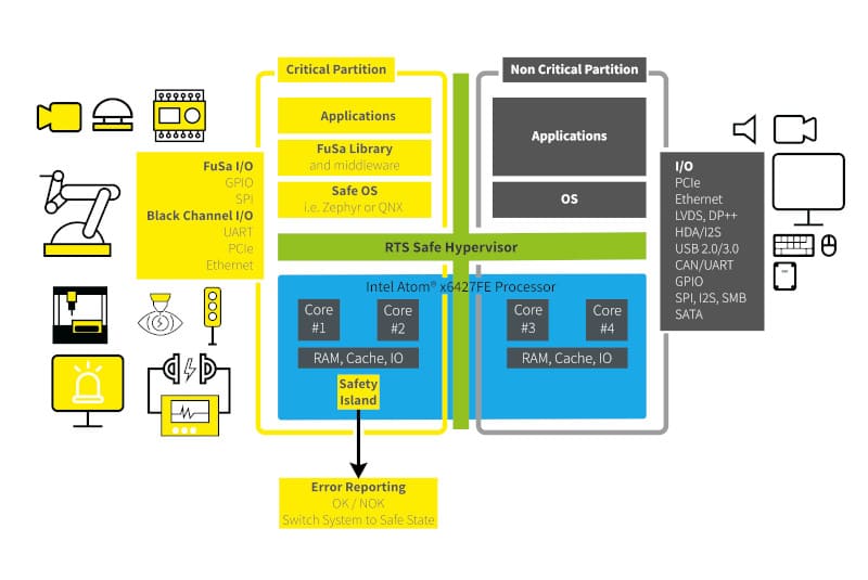 For all of these applications there is also a trend towards hardware consolidation that leads to the need to operate mixed-critical applications on functionally safe multicore embedded systems to manage multiple safety and non-safety critical tasks in parallel. Embedded x86 multicore platforms deliver a solid basis for such applications, which is why congatec now qualifies them for certification with FuSa standards including IEC 61508 and ISO 13849.