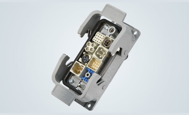 Just as a domino has two separate squares, a Domino Module is composed of two “cubes”. The standard Han-Modular® mating face is split into two almost square surfaces, in which even larger contacts can be accommodated. The cubes support the configuration of customized connectors that are precisely tailored to the requirements of a design. Power, signal and data or compressed air as well as male and female contacts can be combined in one module. Overall, the number of required interfaces per unit is reduced. The connection technology becomes smaller and more lightweight as more modules and module types than before fit into one connector.