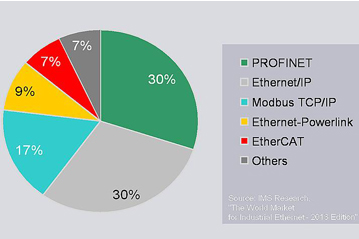 In its new study “The World Market for Industrial Ethernet & Fieldbus Technologies – 2013 Edition,” IMS Research confirms PROFINET a leading position, with a market share of 30%, among the globally established Industrial Ethernet solutions. The study describes the solution promoted by PI (PROFIBUS & PROFINET International) as a comprehensive Industrial Ethernet solution that covers all areas up to and including high-performance drives.