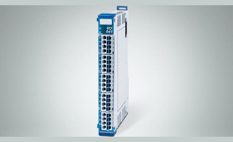 The compact IIO 041 from SIGMATEK’s S-DIAS series has four SDCI master ports and four digital inputs (+24 V DC/3.7 mA/0.5 ms). With SDCI Single-Drop Digital Communication Interfaces (IO-Link), a manufacturer-independent point-to-point connection can be realized for connecting intelligent actuators and sensors in accordance with IEC 61131-9.
