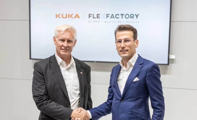 KUKA Systems GmbH and FlexFactory GmbH by MHP | Munich Re | Porsche announced a strategic cooperatio¡ at the automatica trade fair in Munich to jointly offer pay-on-production. The aim of the cooperation is to offer customers adaptable production capacities that are booked as a service. Customers can thus focus entirely on product development and customer satisfaction without having to bear investment costs.