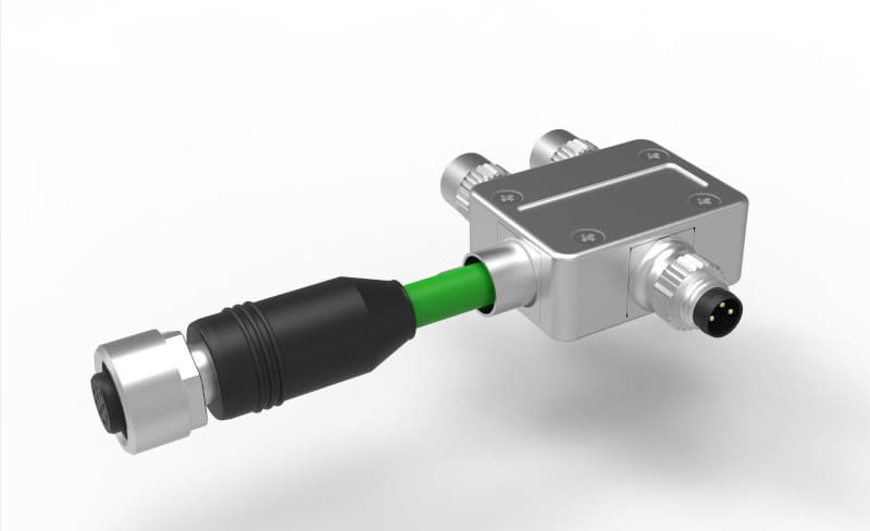 Provertha has developed a compact, fully shielded distribution system for M8/M12 cabling, with which multiple cables can be combined using circular connectors so that signal and power transmission can now be realised over long distances via a single cable. This simplifies the connection of the equipment to the cable networks and helps to save costs.