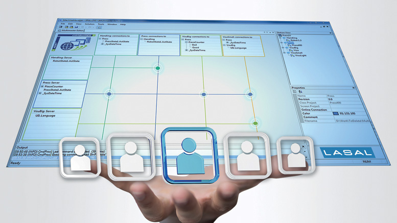 To perfectly reproduce this intelligent modularity in the software, a new tool is available in the object-oriented design environment LASAL: the Machine Manager. It enables the clearly organized display of individual software projects in a machine or system and regulates the communication of distributed intelligences in multi-CPU applications. Projects, which provide data are connected to the projects that should or can use the respective data. Data exchange with external system components and higher-level software can also be implemented with the help of the LASAL Machine Manager. This reduces the work for initial start-up, handling and maintenance, as well as simplifies the implementation of adaptive production strategies.