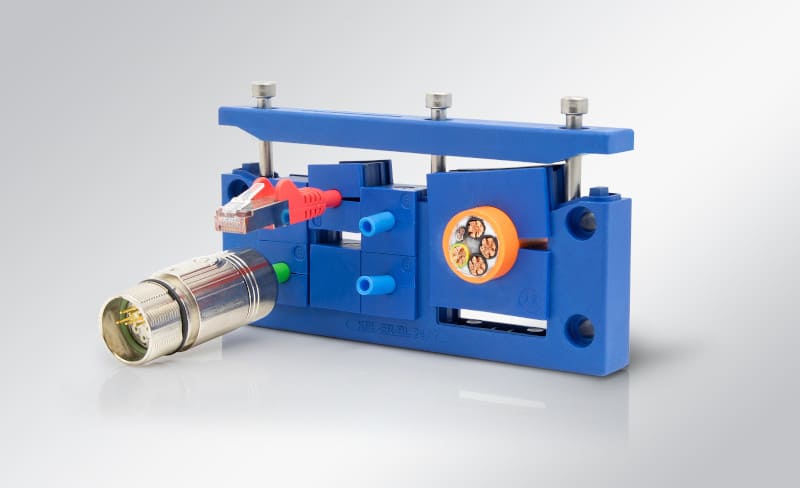 The new cable entry frame fits standard cut-outs for 10-, 16- and 24-pin heavy-duty connectors. The cut-out size can be up to 46 mm instead of 36 mm, meaning that cables with larger connectors can also be routed. The size KEL-ER-BL-B is based on cut-out size 46 x 46 mm (e.g. for controllers and meters). The single-row version KEL-ER-BL-E is characterised by its space-saving design and is ideal for confined spaces and for cables with flat connectors (e.g. Sub-D).