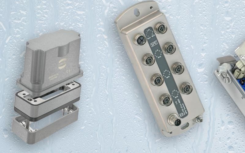 In addition to the expansion of HARTING’s range of stainless steel housings in the Han-INOX® series, the Technology Group presenting the new IP65/67 variant of the Han® docking frame for safe connections without visual contact. The IP67 portfolio is rounded off by the new IP67 SPE Ethernet Switch for secure data transmission in harsh environments.