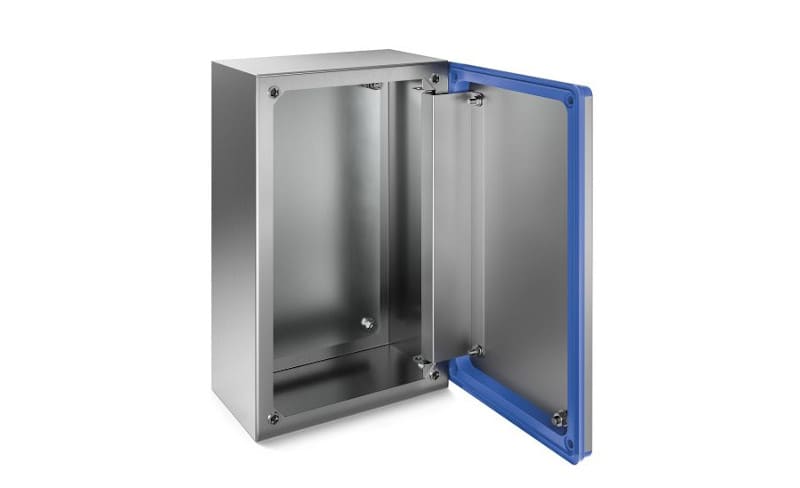 The stainless steel fall prevention system protects the professional working on the box by preventing the lid from accidentally falling off during maintenance work, making operations easier and safer and preventing damage to the electrical panel.