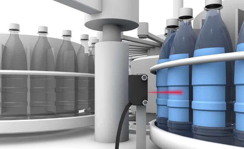 The field of application is diverse: Because of their color and material autonomy, photoelectric proximity switches can detect plastic bottles easily and reliably. Through-beam photoelectric sensors are often used to detect foodstuffs filled in cardboard packaging.