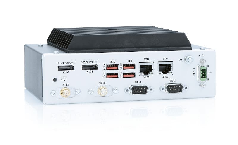 The CPU provides two serial RS232/422/485 interfaces for connecting the KBox A-150-WKL to the sensor and machine environment. For high connectivity, it has been equipped with numerous other interfaces, including two DisplayPort, four USB 3.1 and two Gigabit Ethernet connections with IEEE1588 support. In addition, the system offers 3x M.2 expansion slots, which can for instance be used for integrating SSD storage or WWAN functionality. Optionally, the KBox A-150-WKL can be extended with WiFi or audio functionalities or even up to two CAN ports.