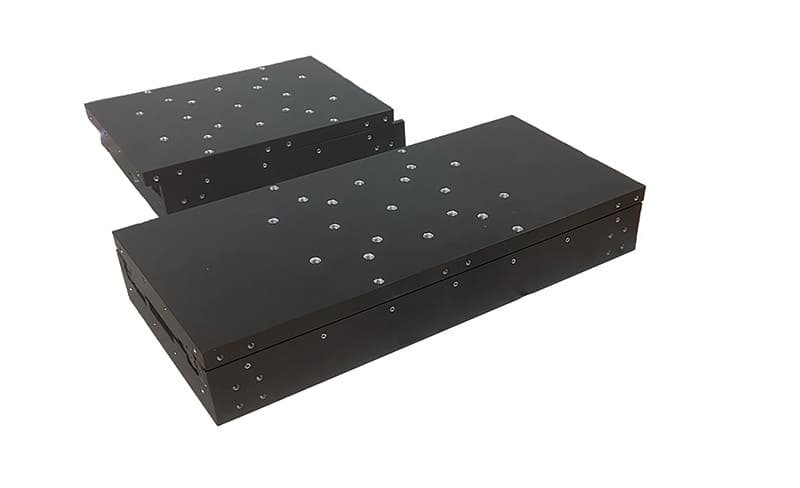 These tables feature high-precision crossed roller bearings, mounted using a proprietary process, for excellent geometric performance. For example, the 130 mm version achieves straightness and flatness of 1.2 μm over the entire travel range, with pitch and yaw angles of just 200 μm. 45 and 45 μrad, respectively.