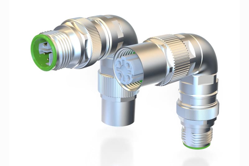 The M12 adapter is angled by 90° as standard; other angular positions are available ex works, for example if several rows of connectors are to be implemented. It is suitable for 100 Mbit data transmission in the temperature range from -40 °C to 105 °C. With its cable outlet pointing upwards or downwards, the angle adapter offers considerable space savings in confined spaces. It also reduces cabling costs and installation time when revising and rewiring Ethernet-capable devices.