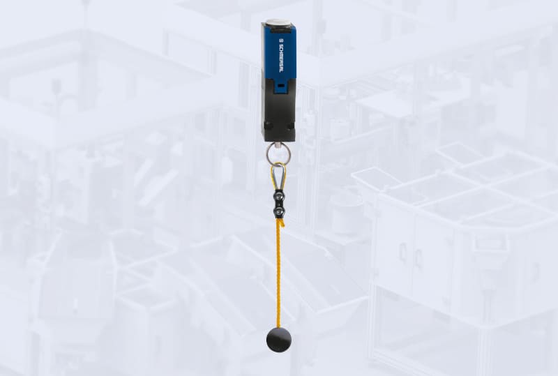 The PS216 pull-wire switch comes in two versions – the Q200 has a holding force of 45 N and is suitable for wire lengths of up to 50 m, while the Q210 has a holding force of 70 N and can be used with wires stretching up to 100 m. Pulling on the pull wire actuates the switch function in the pull-wire switch.