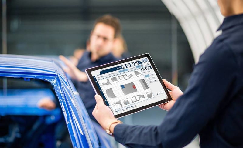 Several terabytes of digital data per year are collected, saved, and evaluated by the intelligent algorithms of the DXQplant.analytics application in the new paint shop. If, for example, an employee detects an irregularity on the paint surface during the quality inspection, he enters it into the tablet. DXQplant.analytics correlates recorded quality results with order data (production number, derivative, color, etc.) and process data on the basis of artificial intelligence to identify patterns. A broad base of data makes it possible to track the fault causes in a targeted way and define measures. In this way, the system can be permanently optimized. For the first time, process data from other suppliers’ components and systems is also evaluated at SVW in Anting using DXQplant.analytics, for example in Application Technology.