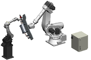 Used in combination with a Panasonic welding robot, the movements of both robots can be fully synchronized using the “Harmonizer Function”. This feature ensures the relative welding torch position to the work piece is maintained automatically. The programming of the weld position becomes as easy as working with a fixed work piece, ensuring that outof-position welding can be avoided.