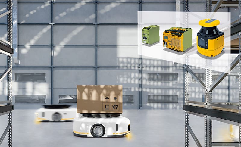 The solution for safeguarding complex AMRs expands the existing offer from Pilz for safeguarding track-bound Automated Guided Vehicle Systems (AGVS). For years Pilz has also supported operators of AGVS with a comprehensive range of services for implementing safe AGVS applications.