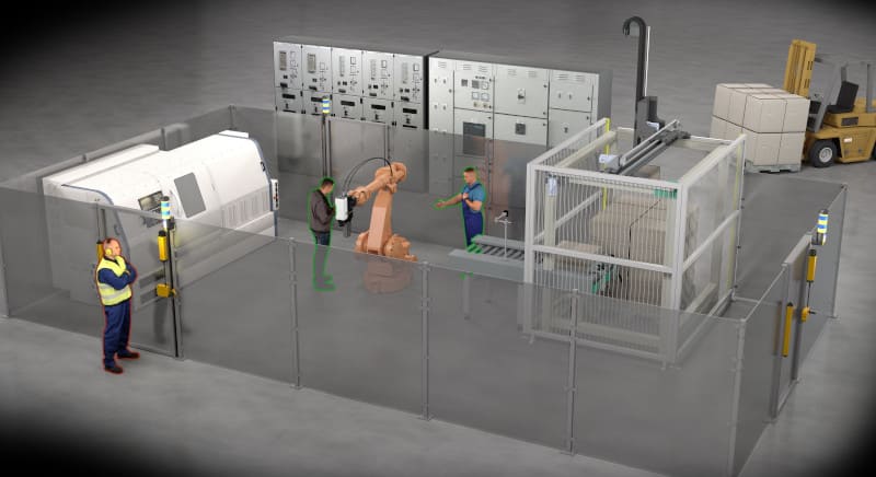 In order to protect employees, certain parts of a machine or production plant are protected by a cell (e.g. robot cell). If a person needs access due to necessary maintenance, the machine must be stopped – only then is it possible to enter the cell. When entering, the person signs in with his personal transponder in a “safe list”. As long as at least one person remains in the danger zone (or a person is entered in the “safe list”), the machine may not be restarted.