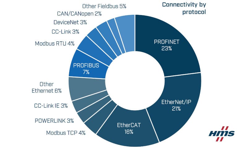 Together, fieldbuses account for 22% of the market in 2024. Despite the decline in new fieldbus nodes, many devices, machines, and factories will continue to rely on these well-functioning and proven fieldbuses for years to come.