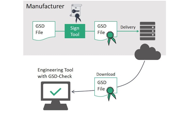PI (PROFIBUS & PROFINET International) now offers a signing service for GSD files for the improved security protection of machines and systems. This is a component of a comprehensive security concept. On the one hand, a signed GSD file ensures its authenticity. On the other, it guarantees the integrity of the functional description of a device from the manufacturer.