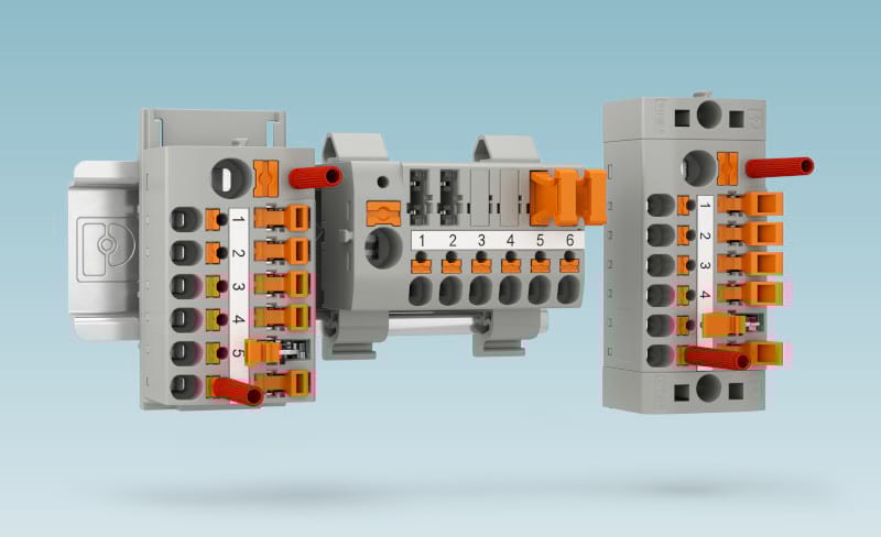 The PTFIX distribution blocks with Push-in connection from Phoenix Contact are individually configured and just need to be unpacked and connected at the user’s premises. The first distribution blocks with integrated function are now available.
