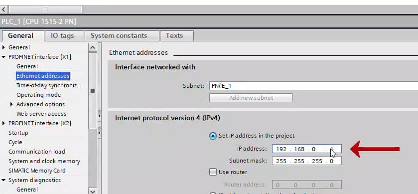 Change the IP address for your CPU in STEP 7 (TIA Portal)
