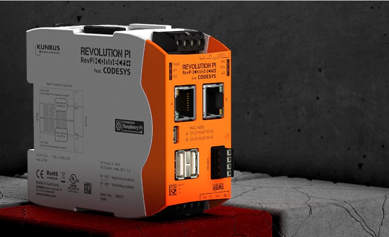 The RevPi Connect+ feat. CODESYS can be used as a powerful, industrial small controller for a variety of different automation tasks and represents a real alternative to complex and cost-intensive PLCs. The RevPi Connect+ feat. CODESYS consists – as the name already indicates – of a RevPi Connect+ and a multicore capable CODESYS Control runtime system.