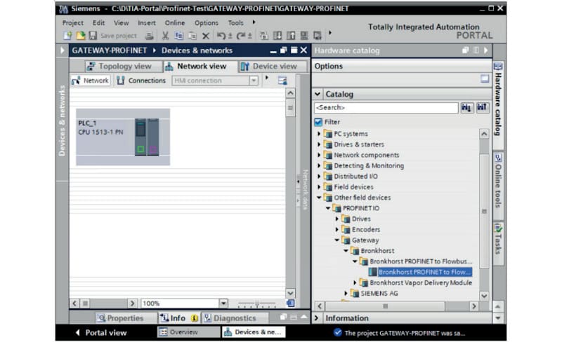 This example uses a Siemens SIMATIC S7-1500 PLC and TIA Portal software to connect to Bronkhorst measuring instruments.