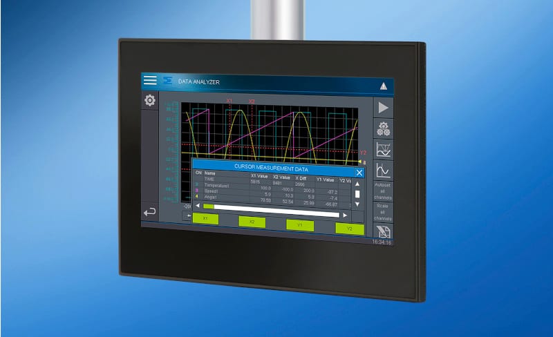 With the elegant glass display enclosed by a 5 mm aluminum frame in black and thus more robust, the fanless HMI also has a lot to offer visually. The creation of the visualization is comfortable and very flexible by using the object-oriented engineering tool LASAL.