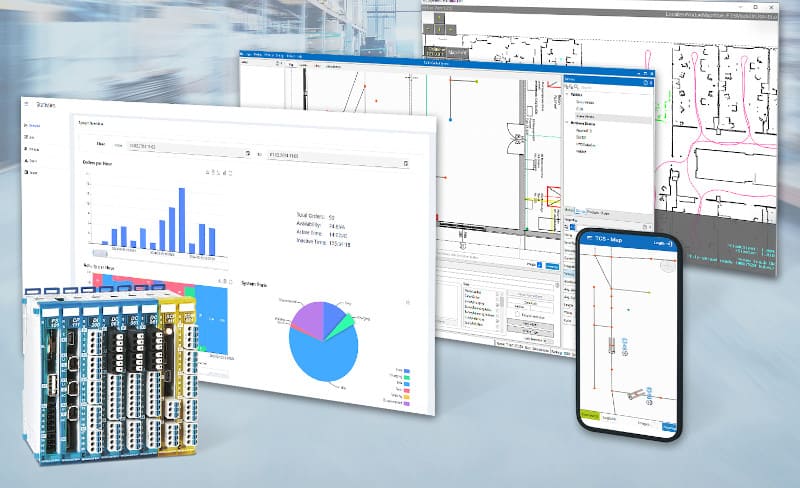 A flexible and open control architecture is a key factor in the automation of automated guided vehicle systems. SIGMATEK’s portfolio includes the extremely compact and robust S-DIAS automation system, consisting of control, safety, drive technology and I/Os with special modules for AGV/AMR as well as open software products. The fleet management system “Traffic Control System”, TCS for short, supports the VDA 5050 protocol and thus enables manufacturer-independent interaction between the control system/fleet management system and AGV/AMR. With the open SlamLoc software from SIGMATEK, contour-based navigation is possible in real time.