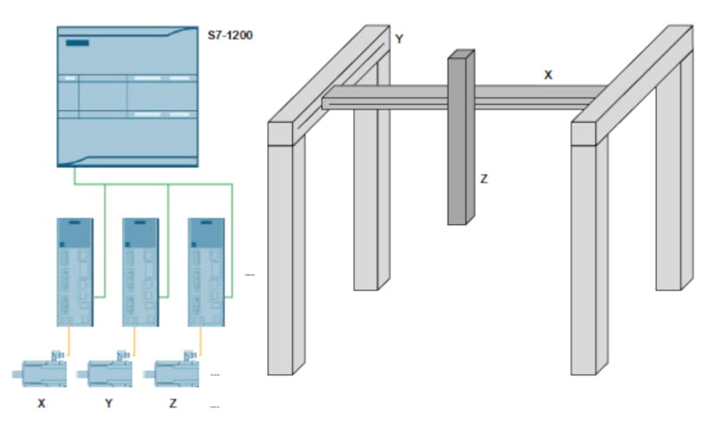 Using the “LAxesGrpCtrl” block library for controllers in the Siemens SIMATIC S7-1200 family, it is possible to coordinate and traverse multiple axes of a Cartesian handling system on a predefined motion path as a synchronous point-to-point (sPTP) movement in space.