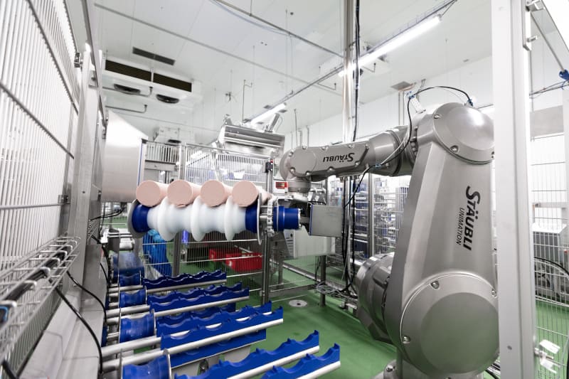 Hygienic robots can automate very different processes in food production. This also includes the safe handling of unpackaged foods, including raw meat and baked goods.
