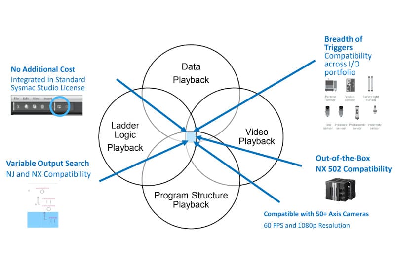 The Omron Sysmac Automation Playback is the convergence of data, video, program structure, and ladder logic.