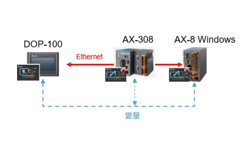 The following takes AX-8 Windows and AX-308 as examples to explain how to transfer data between AX series and DOP-100 series.