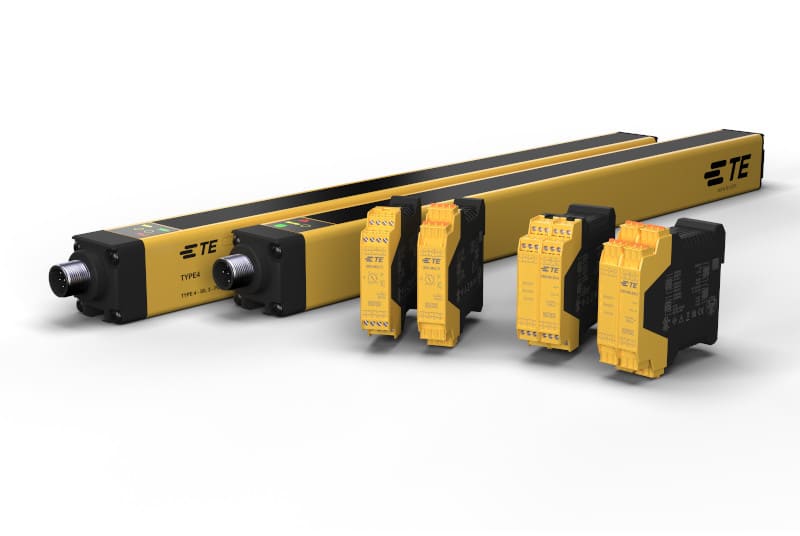 TE introduces a safety product line for robotics, warehouse automation and industrial machinery that includes compact Type 2 and Type 4 SLC safety light curtains in accordance with EN IEC 61496-1/-2 standards. These IP67 safety sensors with a resolution of up to 14 mm for hand and finger protection increase safety at access points to hazardous areas.