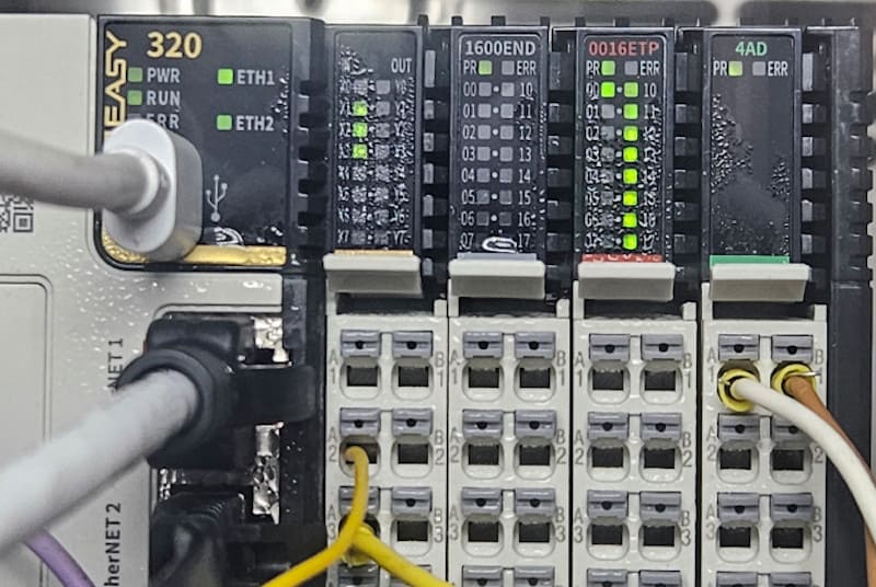 The product specifications for the Easy series PLCs states a wide operating temperature range (from -20°C to 55°C), leading Elpesoft to carry out testing of the Easy320-0808TN controller model with four GL20 series I/O modules attached.