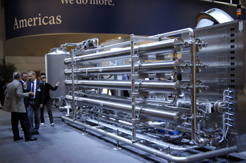Careful, i.e. cost-efficient use of the resource of water will be a common theme covered right through the exhibition halls at drinktec 2013, in particular at the booths of the exhibitors in Halls A3, A4 and B2. Professor Dr. Stefan Schildbach from the University of Fulda, Dept. of Food Technology, describes the current situation as follows: “Sustainability most certainly also affects the subject of water processing. Savings that only a few years ago were considered too small and not cost-effective to implement, are now becoming ever more interesting. I am thinking here, for example, of the processing of water from filter backwash and of further increasing the yield in reverse osmosis plants. Also, intelligent control and monitoring strategies will start to become more important.”