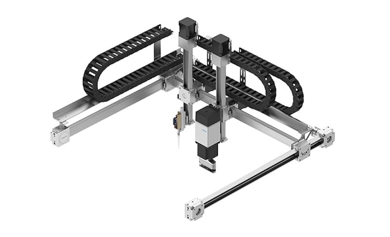The three-dimensional gantry with stepper motors and optional motion controller can be easily integrated in desktop systems. The maintenance-free system is tested and documented. The motion controller of the EXCL can be addressed via G-code. This means that the higher-level controller can simply send the target coordinates for the front ends, so that no complex configurations are necessary. In addition, the motion controller panel can be easily mounted in the unit and does not require a control cabinet. Festo supplies the EXCL as a kit with pre-assembled axes, ensuring quick and easy assembly.