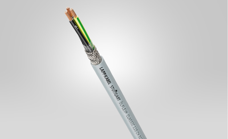 Another special feature is that the cable comes without an inner sheath and is thus particularly compact. “This makes it thinner, more flexible, lighter and cheaper, but still very sophisticated in terms of design,” emphasises Jürgen Beck. This cable also has a particularly high fire behaviour in accordance with the EU Directive 305/2011 (BauPVO/CPR). The new cable also has higher oil resistance in accordance with DIN EN 50363-4-1 (TM5) as well as UL OIL RES I and OIL RES II and, thanks to a copper braiding screening with a high degree of coverage, it guarantees ideal protection against electromagnetic interference. It also provides high electrical safety thanks to 4000 V test voltage. The UL certification also allows the product to be used in North America.