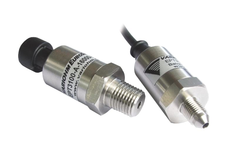 Variohm pressure sensors are characterised by high strength, ruggedised designs with housings and wetted parts suited to the potentially corrosive properties of the measured gases and liquids. Most often used materials across the range are various grades of stainless steels although thermoplastics, brass, and more exotic housing and wetted parts materials such as titanium are also available. The comprehensive range includes miniature designs and a wide choice of pressure port configurations and electrical interfacing options for maximum application flexibility. Environmental ratings from IP65 to IP69K ensure high resistance to debris and water ingress. Variohm also offers combined pressure and temperature transducers that enable a single device to take measurements of both variables, saving valuable space and simplifying system controls.