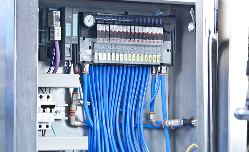 For systems like this, from the control of steam temperature to liquid flow rate, the PLC sends analogue signals to field devices, such as valves and sensors, that return signals as required, also via analogue communications. Meanwhile, the PLC communicates with the human machine interface (HMI) via Ethernet-based, digital signals.