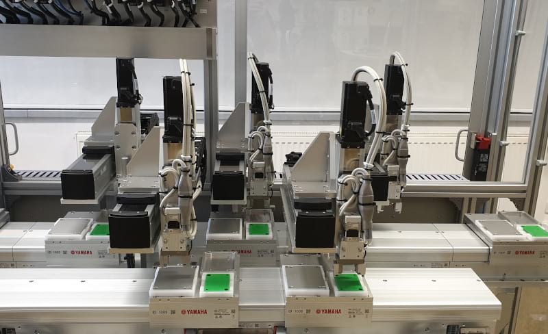 A second demonstration featuring the YK400XE, leveraging software created by Yamaha to integrate Asyril’s Asycube intelligent parts feeder, accelerates picking and accurate placement of bulk components. Orientation checking on-the-fly, with Yamaha’s RCXiVY2+ vision system, further boosts productivity.