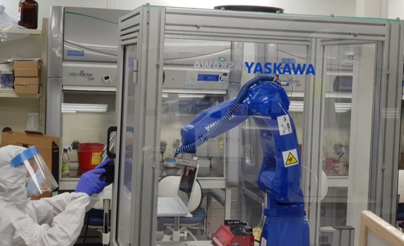 Yaskawa R&D in Israel successfully completed the development of a robotic system performing an important phase of corona lab tests. The system has a six axis robot and external components and performs part of the lab testing process automatically with no human touch. The automation process includes sampling of 96 ampoules in each testing cycle and PCR preparation. It is quick, accurate and allows up to 2,800 tests 24/7.