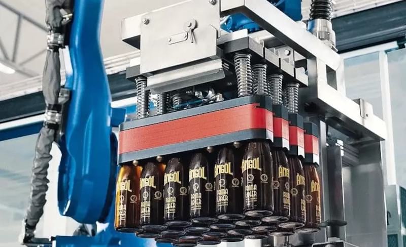 The special feature of the system are the patented grippers. They are stable, durable and can be individually configured. In the rare event of a defect, the user can maintain and repair them himself thanks to the modular design. This aspect has already convinced large packaging line operators. In addition to many breweries and beverage producers, Norway’s Roma Mineralvannfabrikk AS also uses the special gripper system together with the sorting table. Two models are used especially in this application. One is the heavy-duty robot Motoman SP800 with five axes, which can move a weight of up to 800 kg, and the other is the palletiser Motoman MPL500 with four axes and a load capacity of 500 kg. Thanks to the higher filling capacities, the company was able to increase its sales by around 30 percent. Robots from Motoman are also used in other areas of the beverage industry, such as palletizing.
